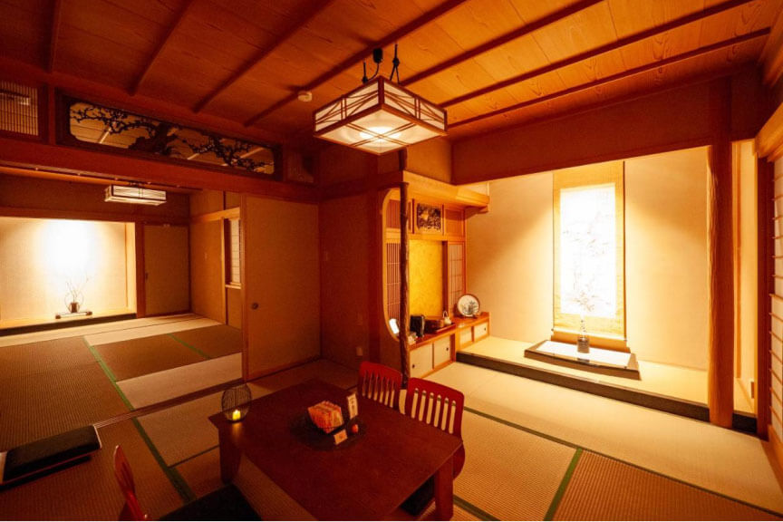 The interior is designed in a modern Japanese style and is equipped with a wide range of amenities.