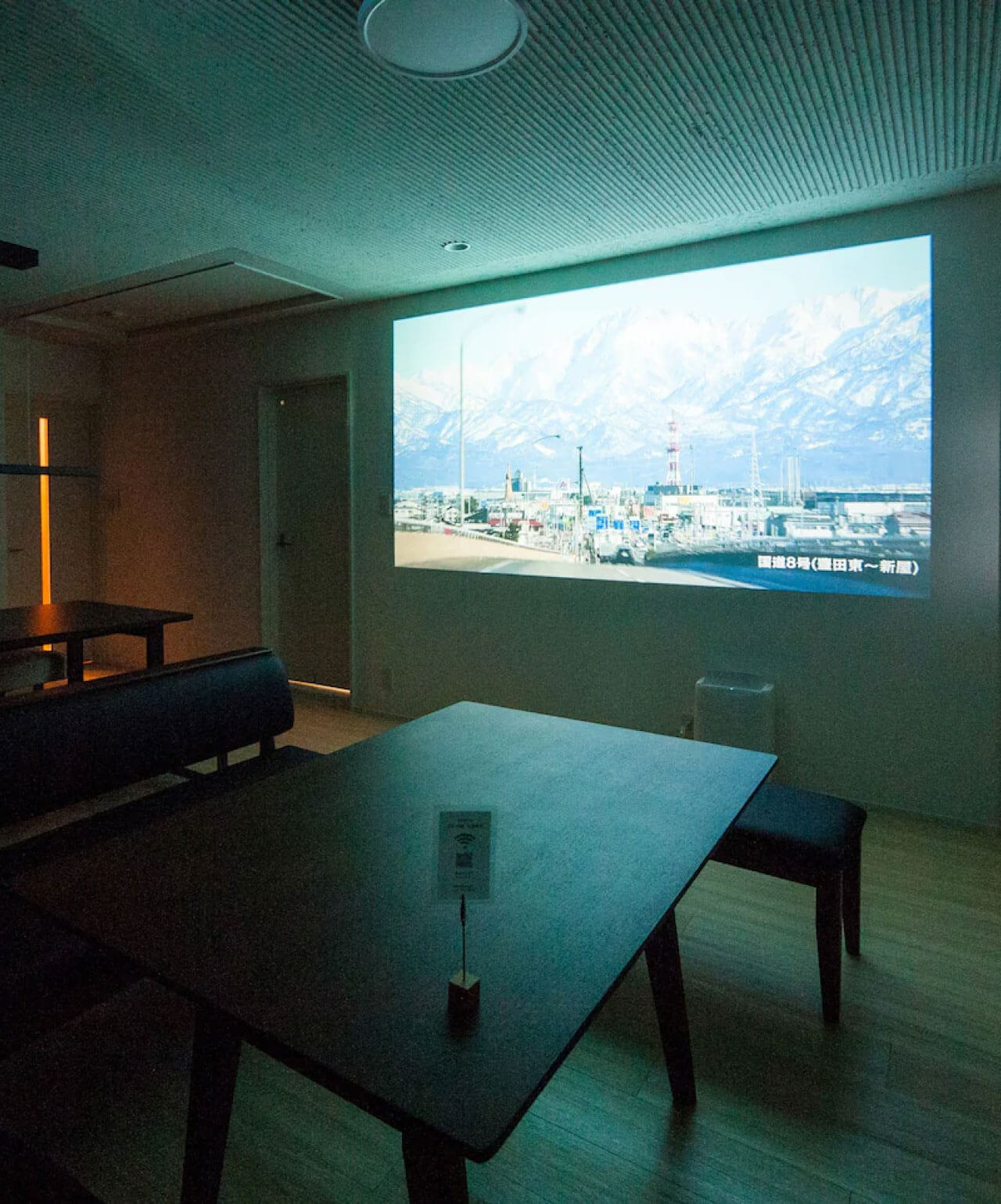 The living room is equipped with a 65-inch high-definition TV and a 120-inch projector, allowing you to enjoy various video streaming services such as Netflix and Amazon Prime Video. A 50-inch internet-connected TV without a built-in tuner is installed on the second floor. Both floors are equipped with soundbars, providing immersive high-quality audio.